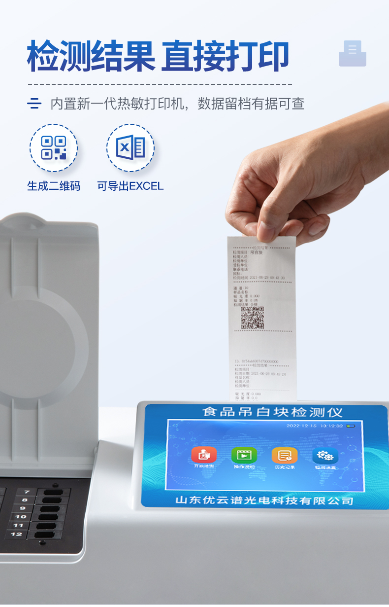 4、 配備嵌入式熱敏打印機,可選擇手動打印或者自動打印,三分鐘出打印結(jié)果。