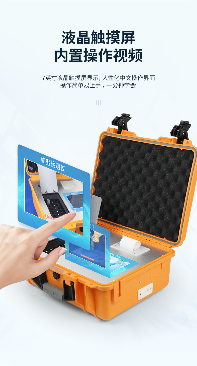檢測項目:蜂蜜蔗糖、蜂蜜還原糖(葡萄糖和果糖)、蜂蜜羥甲基糠醛、蜂蜜酸度、蜂蜜中農藥殘留、蜂蜜淀粉酶值、蜂蜜中脯氨酸、蜂蜜水分、蜂蜜糖分、蜂蜜中重金屬(鉛、鎘、汞)、蜂蜜中抗生素(氯霉素、四環素、磺胺類、呋喃類、喹諾酮類)、蜂蜜中灰分,應用范圍:應用于現場檢測蜂蜜蔗糖、葡萄糖和果糖、羥甲基糠醛、酸度、農殘、淀粉酶、脯氨酸、水分、糖分、重金屬、抗生素、灰分含量的蜂蜜快速檢測儀,可廣泛應用于各類蜂蜜品質的快速定量檢測。