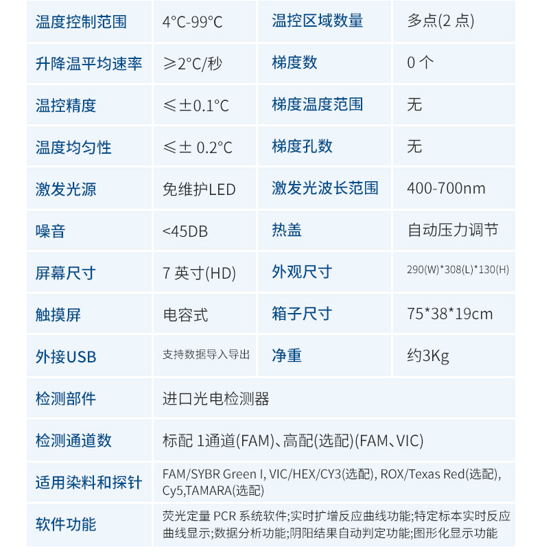 對(duì)取于其他動(dòng)物體內(nèi)的生物樣本(如血液,體液等)中包含的目標(biāo)核酸,進(jìn)行快速精準(zhǔn)的定性和定量分析,同時(shí)也能夠?qū)μ厥鈽颖具M(jìn)行標(biāo)準(zhǔn)曲線,熔解曲線,基因分型等分析。