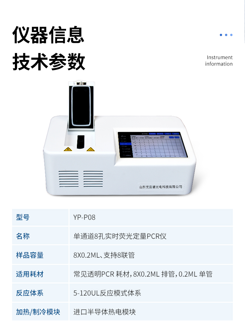 YP-P08型號(hào)非洲豬瘟快速檢測(cè)儀的原理:聚合酶鏈?zhǔn)椒磻?yīng)(polymerase chain reaction,PCR)是一種用于放大擴(kuò)增特定的DNA片段的分子生物學(xué)技術(shù),它可看作是生物體外的特殊DNA擴(kuò)增,由高溫變性、低溫退火及適溫延伸等幾步反應(yīng)組成一個(gè)溫度循環(huán)周期,使目的基因得以迅速擴(kuò)增,具有特異性強(qiáng)、靈敏度高、操作簡(jiǎn)便、省時(shí)等特點(diǎn),是基因擴(kuò)增技術(shù)的一次重大革新。PCR技術(shù)可將極微量的目標(biāo)DNA特異地?cái)U(kuò)增上百萬(wàn)倍,從而大大提高對(duì)DNA分子的分析和檢測(cè)能力。