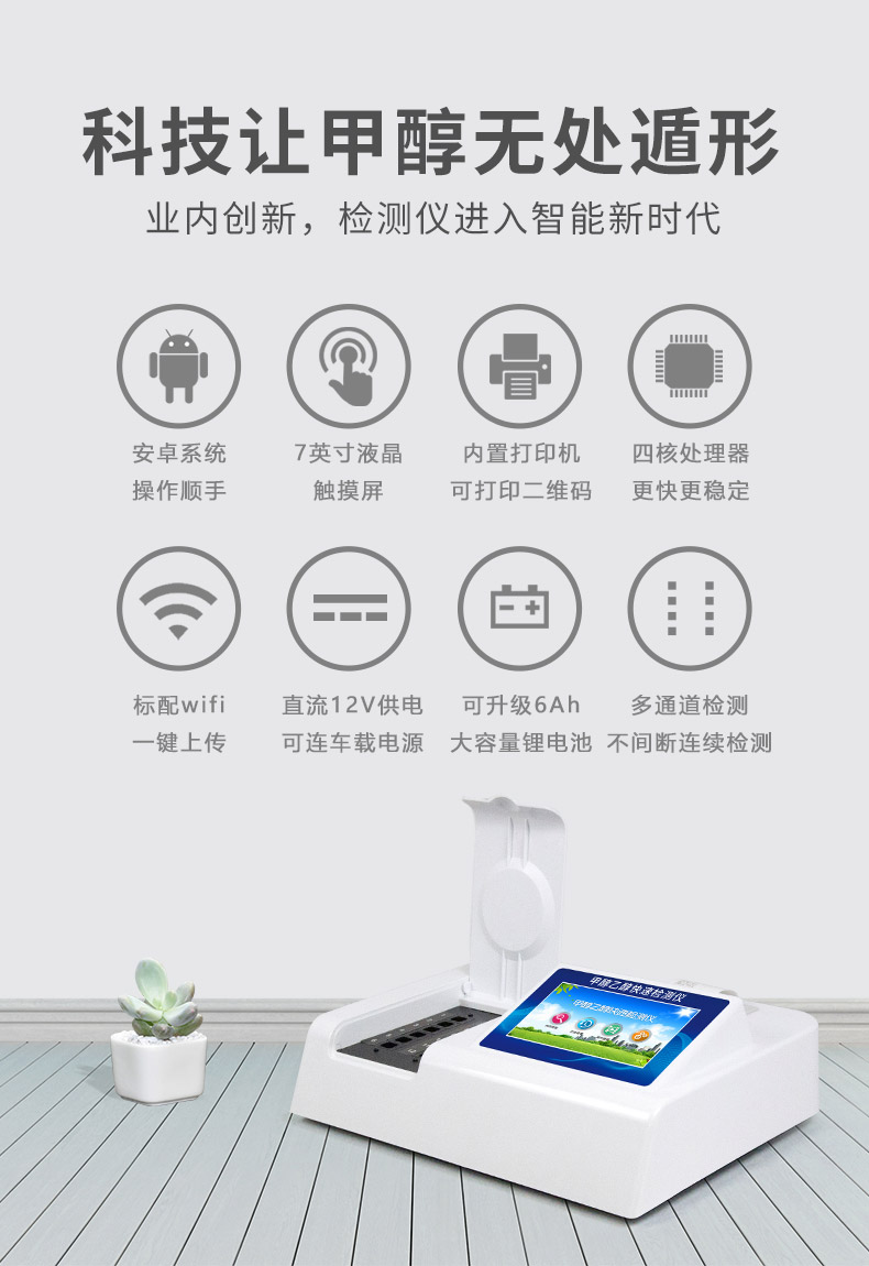 檢測項目:可快速定量檢測各類酒中的甲醇和乙醇的含量,儀器預留其他項目檢測程序和端口,根據日后需求可方便的自主增加檢測項目。日后可升級為檢測,水產品,肉制品,面制品的綜合類型儀器。