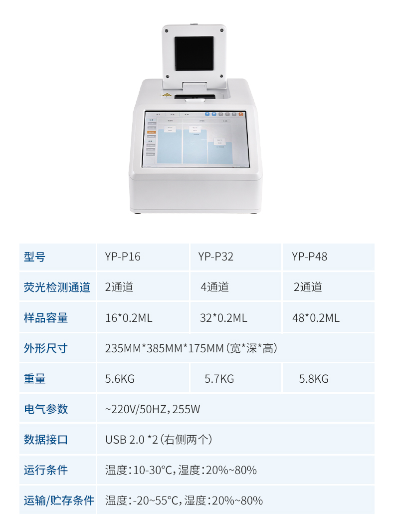 YP-P96型號實時熒光定量PCR系統(tǒng)主要用于運行實時熒光定量PCR實驗,通過熒光激發(fā)和采集的方式,對實驗過程進行實時監(jiān)控,將實驗過程數(shù)據(jù)繪制成熒光曲線,實時呈現(xiàn)于儀器顯示界面,并對實驗數(shù)據(jù)進行擬合和分析,最后可生成PDF格式的實驗報告。