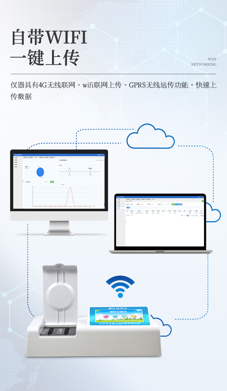 1、安卓智能操作系統(tǒng),采用更加高效和人性化操作,儀器具有網線連接、wifi聯(lián)網上傳、GPRS無線遠傳功能,快速上傳數據。