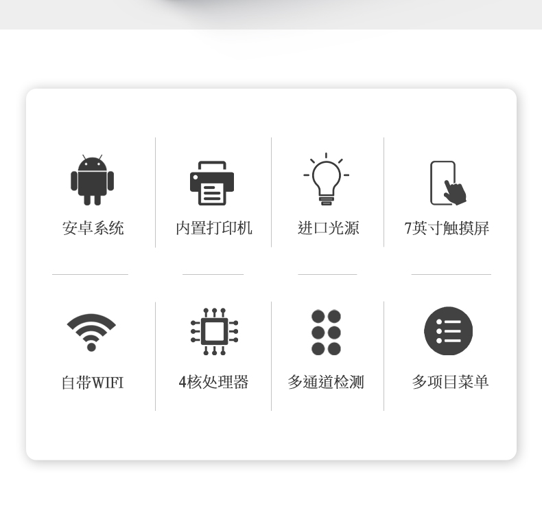 6、光源采用進口超高亮發(fā)光二極管,高精度、穩(wěn)定性強、光源可控、可以關掉不使用的光源,功耗更低。