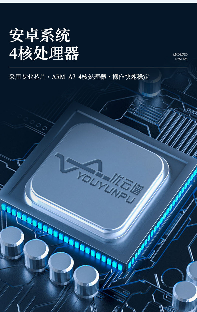 1、主控芯片采用ARM Cortex-A7,RK3288/4核處理器,主頻1.88Ghz,運轉速度更快速,穩(wěn)定性更強。